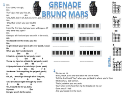 Grenade Sheet Music Bruno Mars Guitar Chords Lyrics
