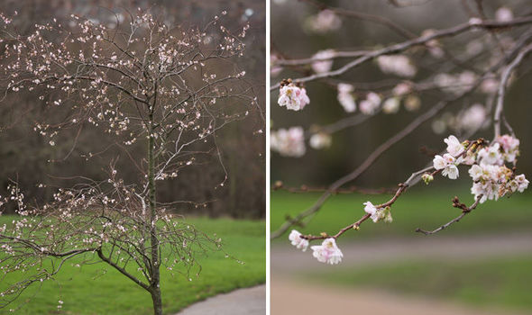Warm December Sees Snow Being Replaced By Pale Pink Blossom Trees